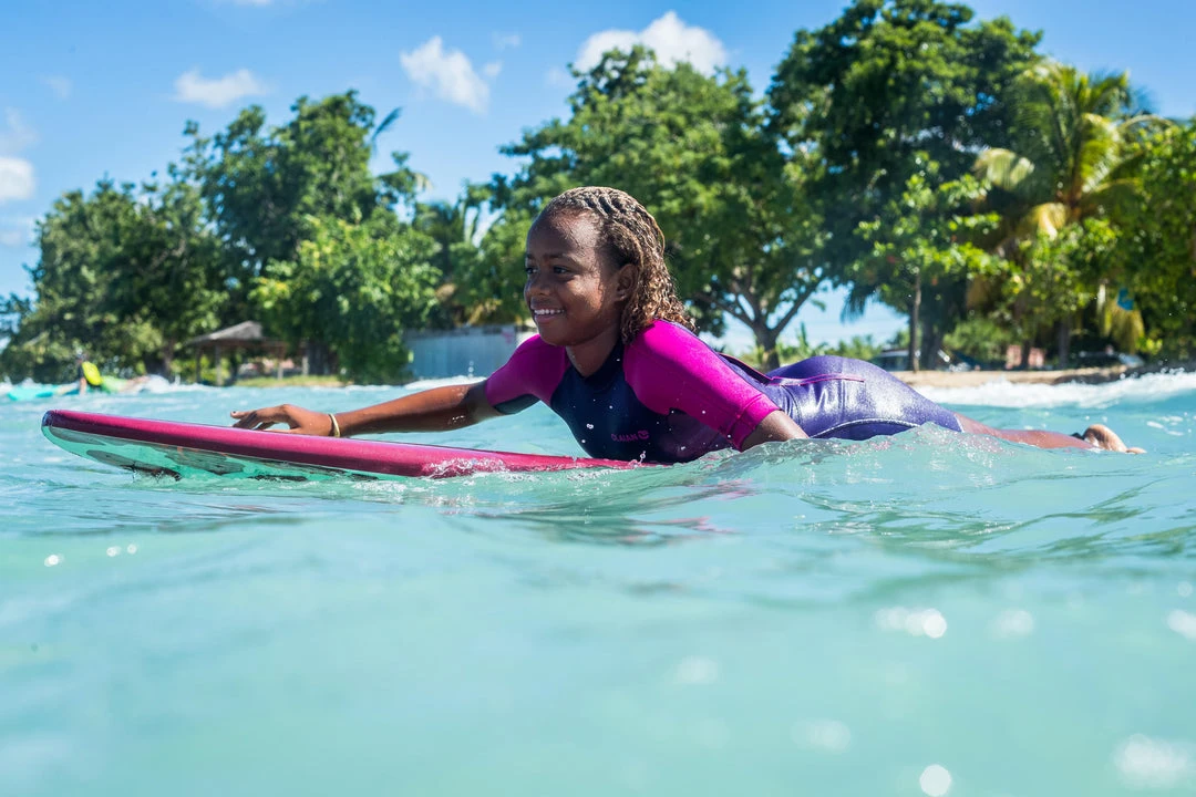 The Olainan 500 7โ Foam Surfboard with Leash and 3 fins by Decathlon is a board that is a bit shorter than others. Yet, you can still have a good amount of fun hitting the waves. Itโs got a surf leash to ensure you stay intact with it and not lose it out in the water. Itโs got fins that allow for floatation and easier control while youโre carving up the waves. Its high-quality material makes gliding performance a smooth ride for even the newbies. Itโs wide and has a volume of 55 liters, making it a good board for stability, even for those starting out and who want to easily keep their balance.